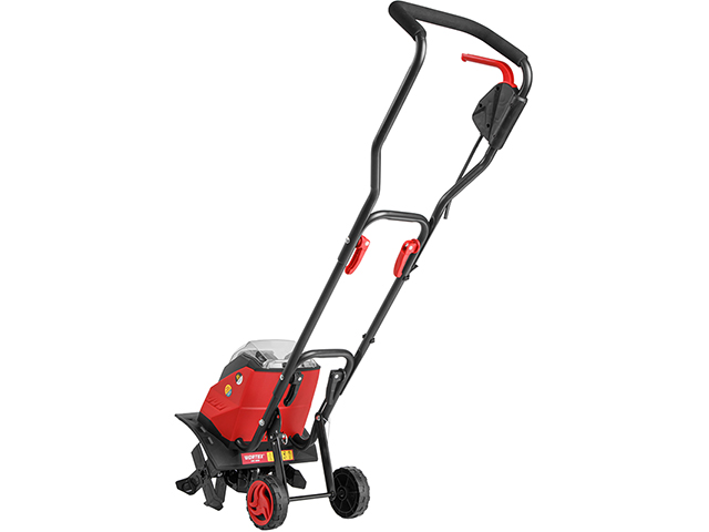 Аккумуляторный культиватор WORTEX предназначен для обработки земли в парниках, теплицах, оранжереях и небольших приусадебных хозяйствах. С его помощью можно разрыхлять грунт, культивировать почву и уничтожать сорняки. Модель оснащена бесщеточным двигателем, что обеспечивает повышенную производительность, долгий срок службы и на 50% сокращает расход энергии аккумулятора! Высокое качество обработки достигается благодаря мощному двигателю, а также большой ширине и глубине культивации. Наличие складной рукоятки способствует компактности при хранении агрегата. Колеса облегчают транспортировку. Защитный кожух предотвращает попадание земли на оператора, а также препятствует загрязнению корпуса прибора. Инструмент изготовлен из ударопрочного пластика PA6GF30.